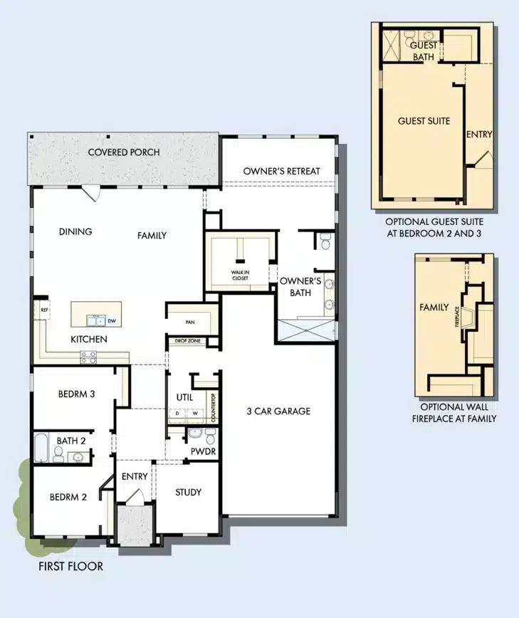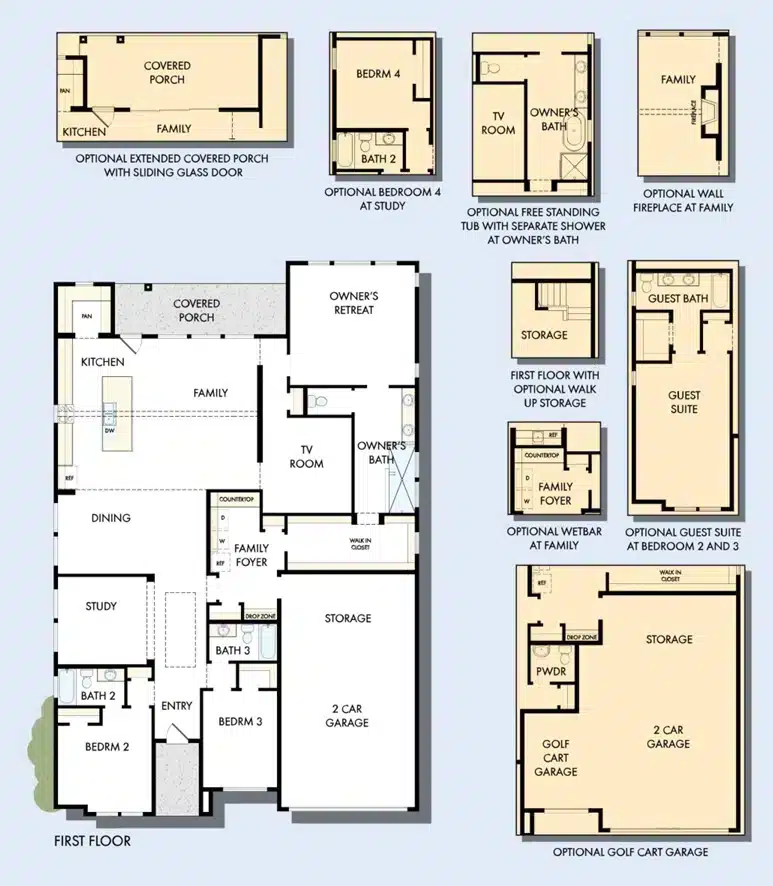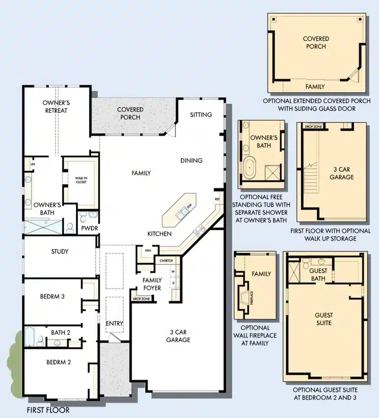 Open sight lines and flowing traffic patterns make movement through the kitchen, dining and family spaces effortless. The spacious Owner’s Retreat makes it easy to rest and refresh at the end of each day a pamper-ready Owner’s Bath and a walk-in closet.