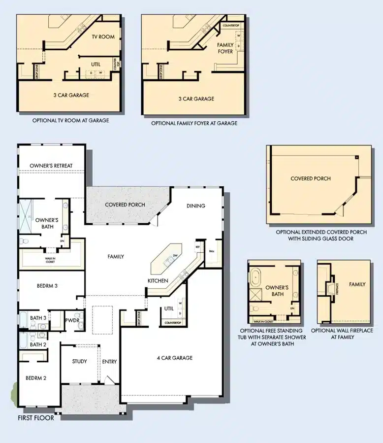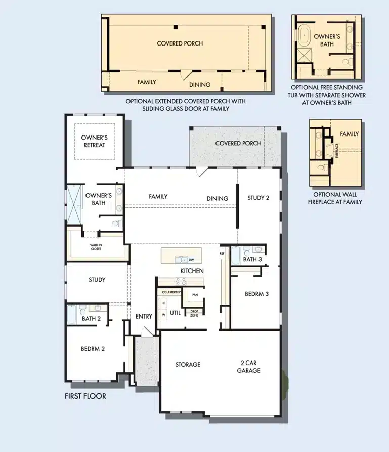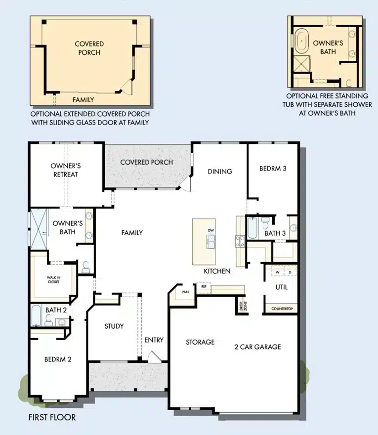 Cook up culinary delights and share family breakfasts around the kitchen island. The Owner’s Retreat includes a walk-in closet and a superb Owner’s Bath.