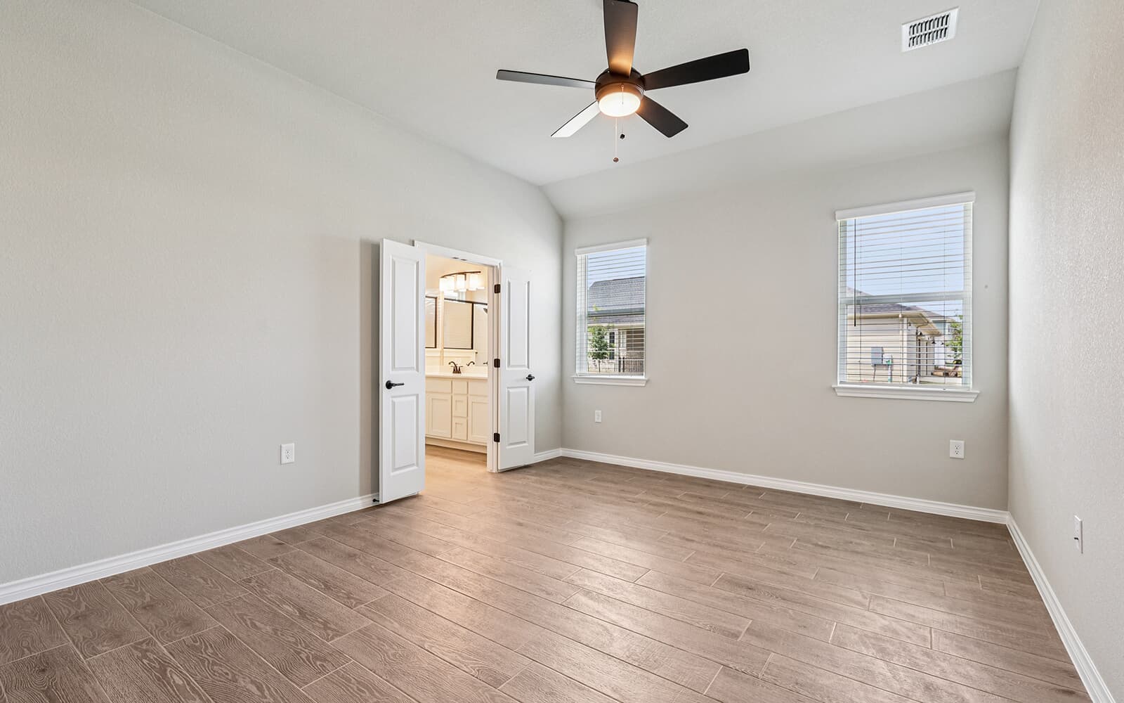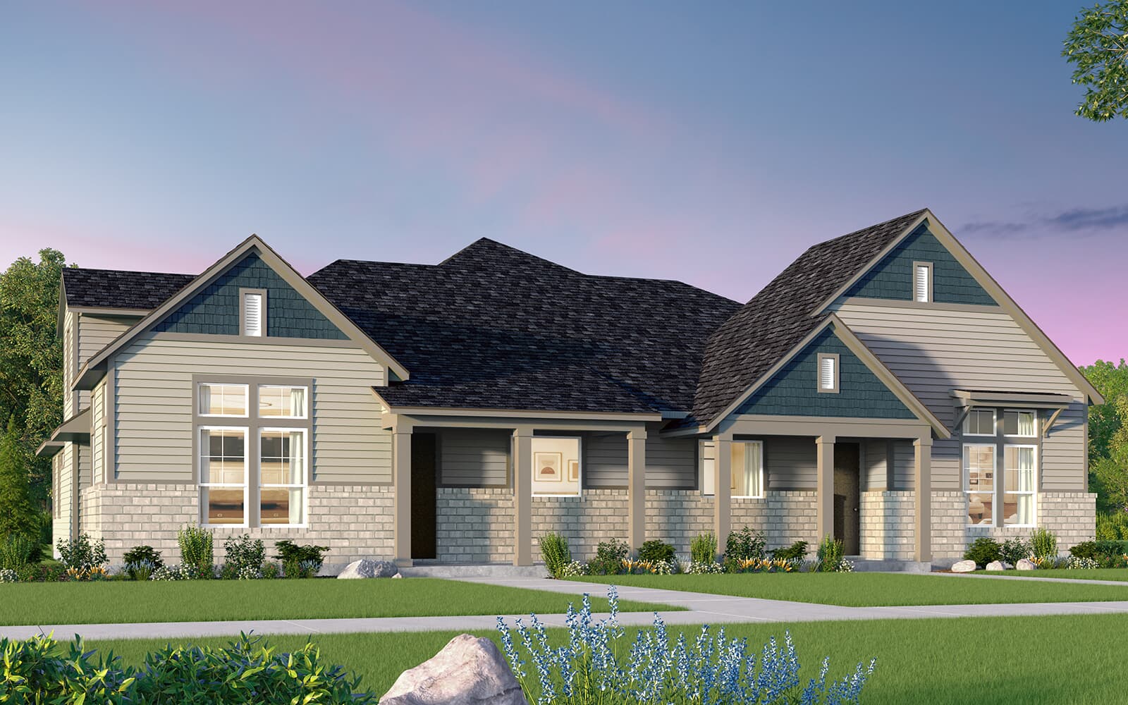 The Evia is our largest Villa, offering a large front porch, an extra flex room that could be used as an office or project space, and an upstairs loft. The large primary bedroom is located on the first floor, tucked behind the public living areas to maximize privacy. The open-concept...