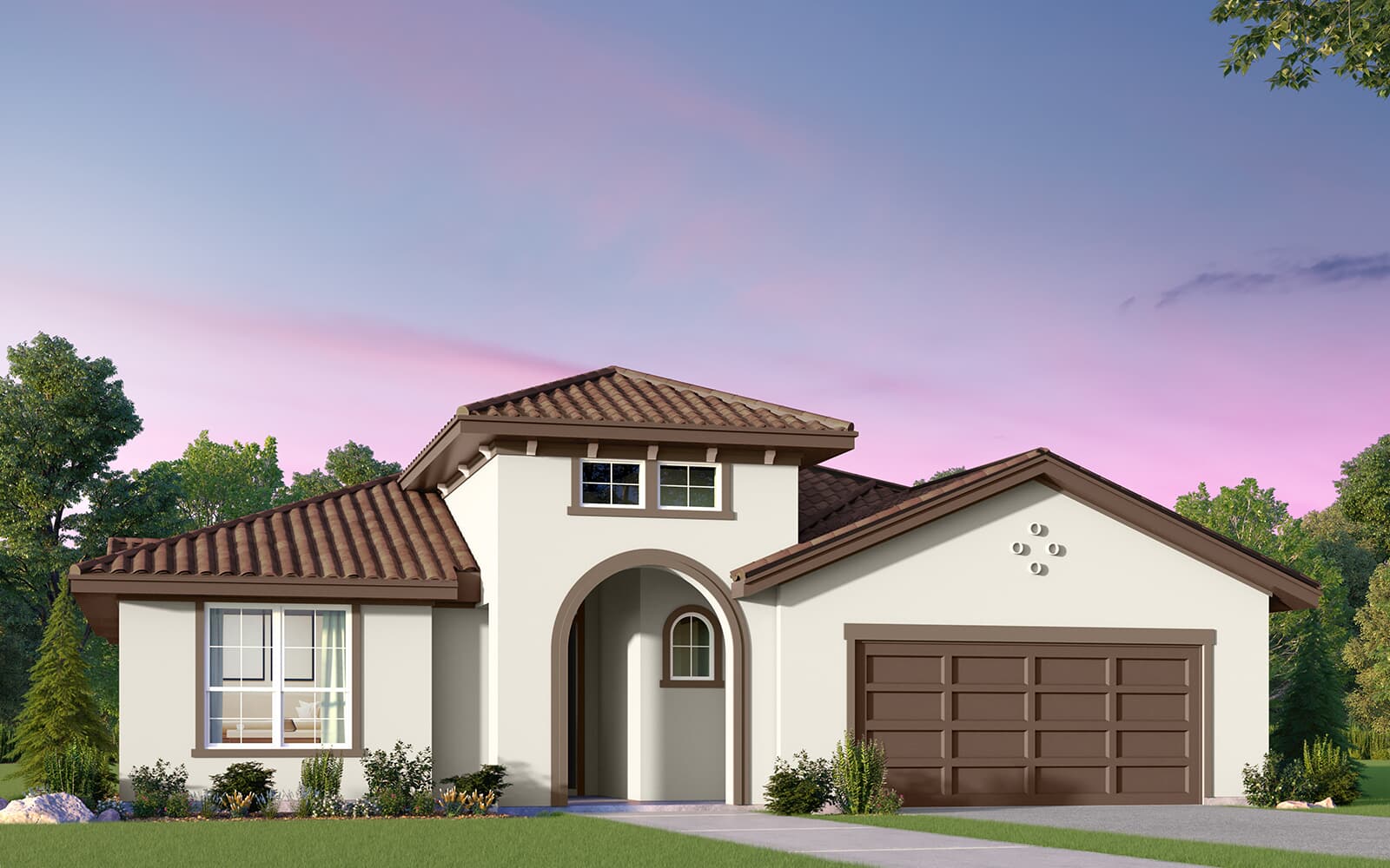 With two bedrooms and a flexible study space, the Auburn is the perfect single-story home for easy living. Guests are welcomed into an elegant entry hall that leads into an open-concept living space. The living room, dining, and kitchen are centered around a generous island, all overlooking the private covered...