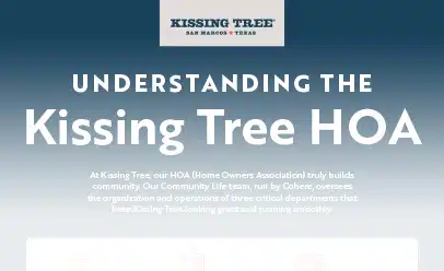 At Kissing Tree, our HOA (Home Owners Association) truly builds community. Homeowners pay monthly dues that cover the cost of maintaining community areas, ensuring neighborhood safety, covering the cost of lifestyle programming, and more.